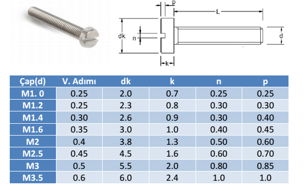 tORNAVİDA YARIKLI DÜZ BAŞLI VİDA DIN84
